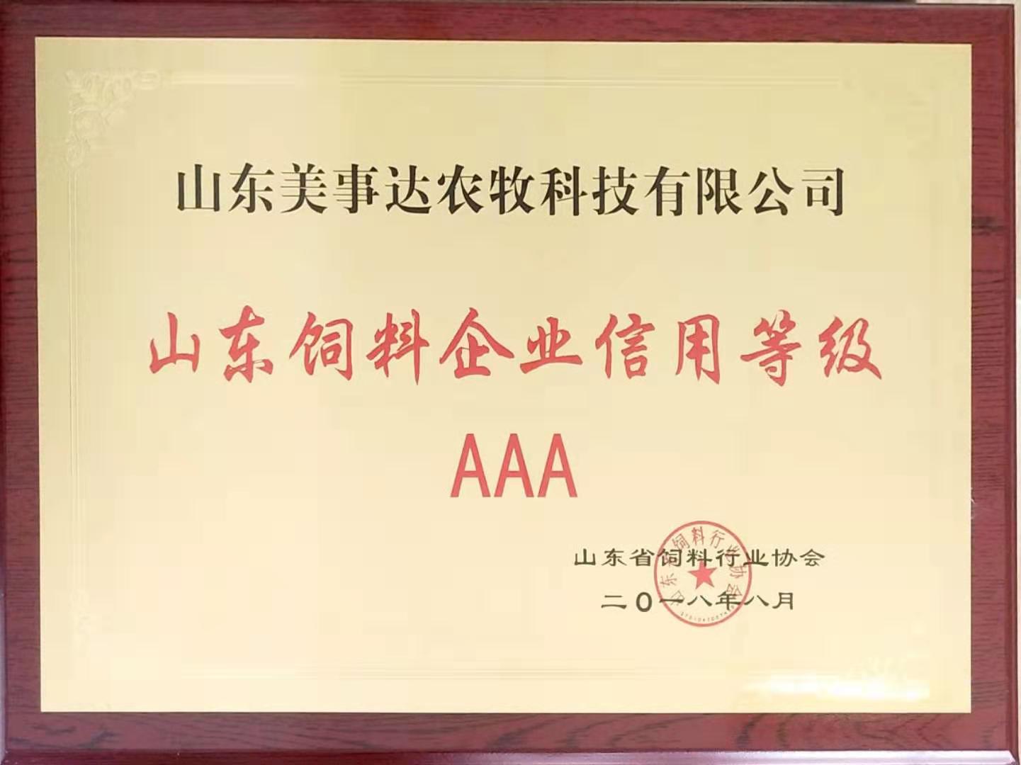 熱烈祝賀我公司被授予山東省飼料行業協會理事單位/山東飼料企業信用等級AAA。