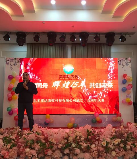 ? ? ? 2019年12月28日,2020年“風雨同舟 共創(chuàng)未來”元旦晚會暨山東美事達農(nóng)牧科技有限公司成立15周年慶典在濟陽華冠天成酒店圓滿舉行。