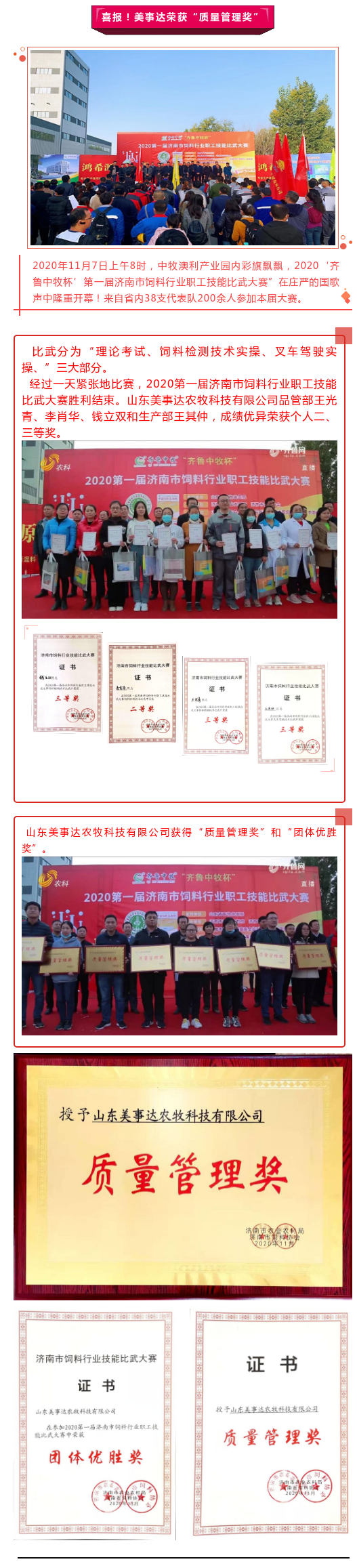 喜報!美事達(dá)榮獲“質(zhì)量管理獎”