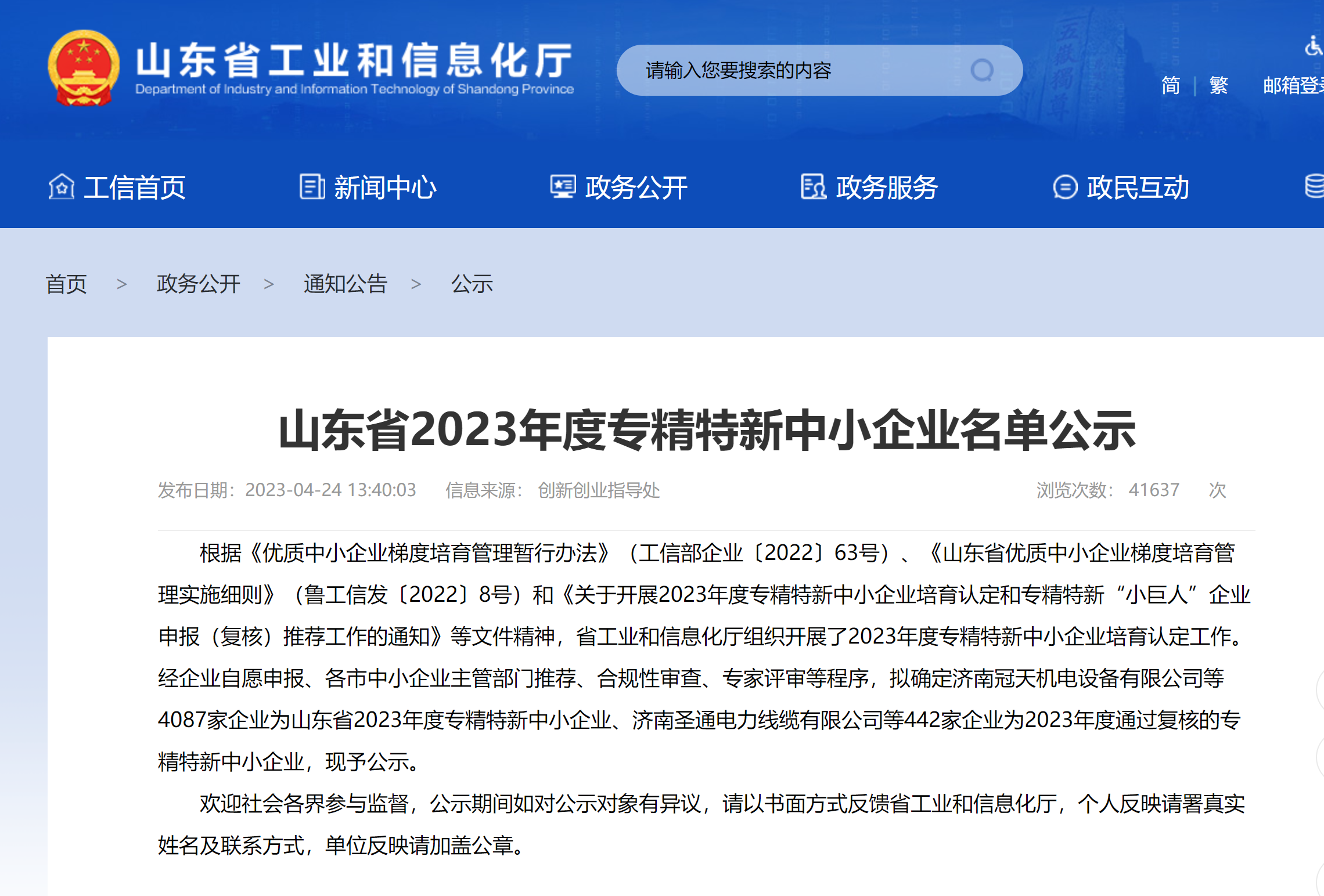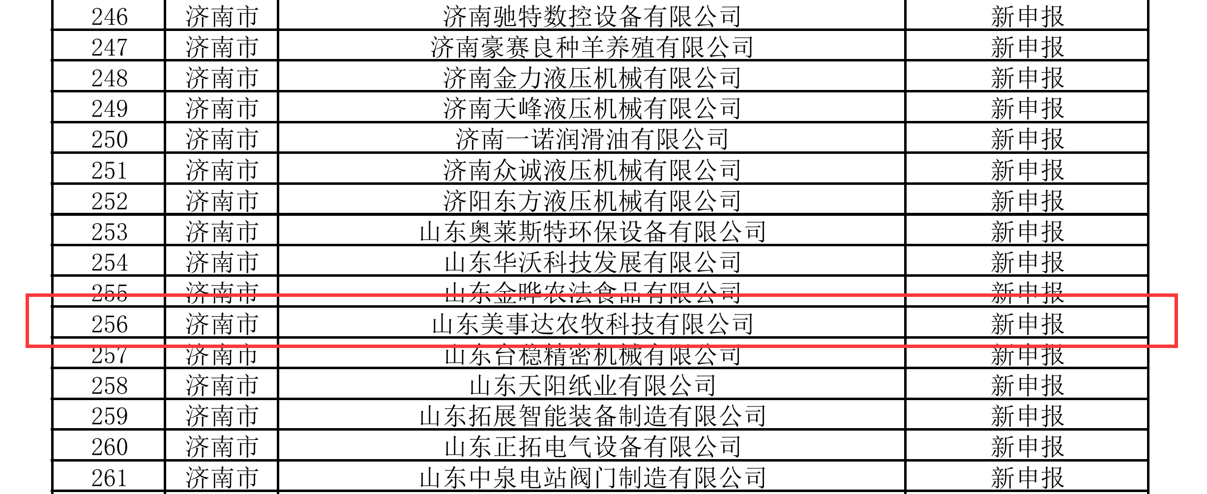 ? ? ? ? 近期,山東省工業和信息化廳公示了“山東省2023年度專精特新中小企業名單”。山東美事達農牧科技有限公司上榜。