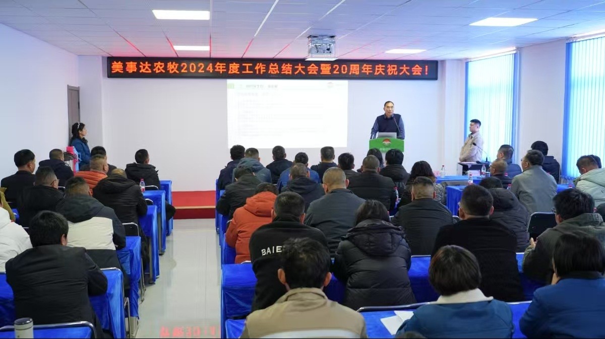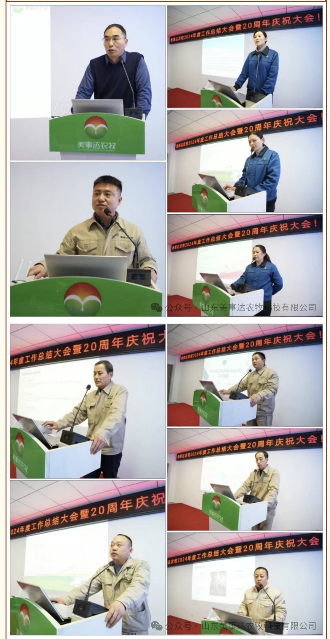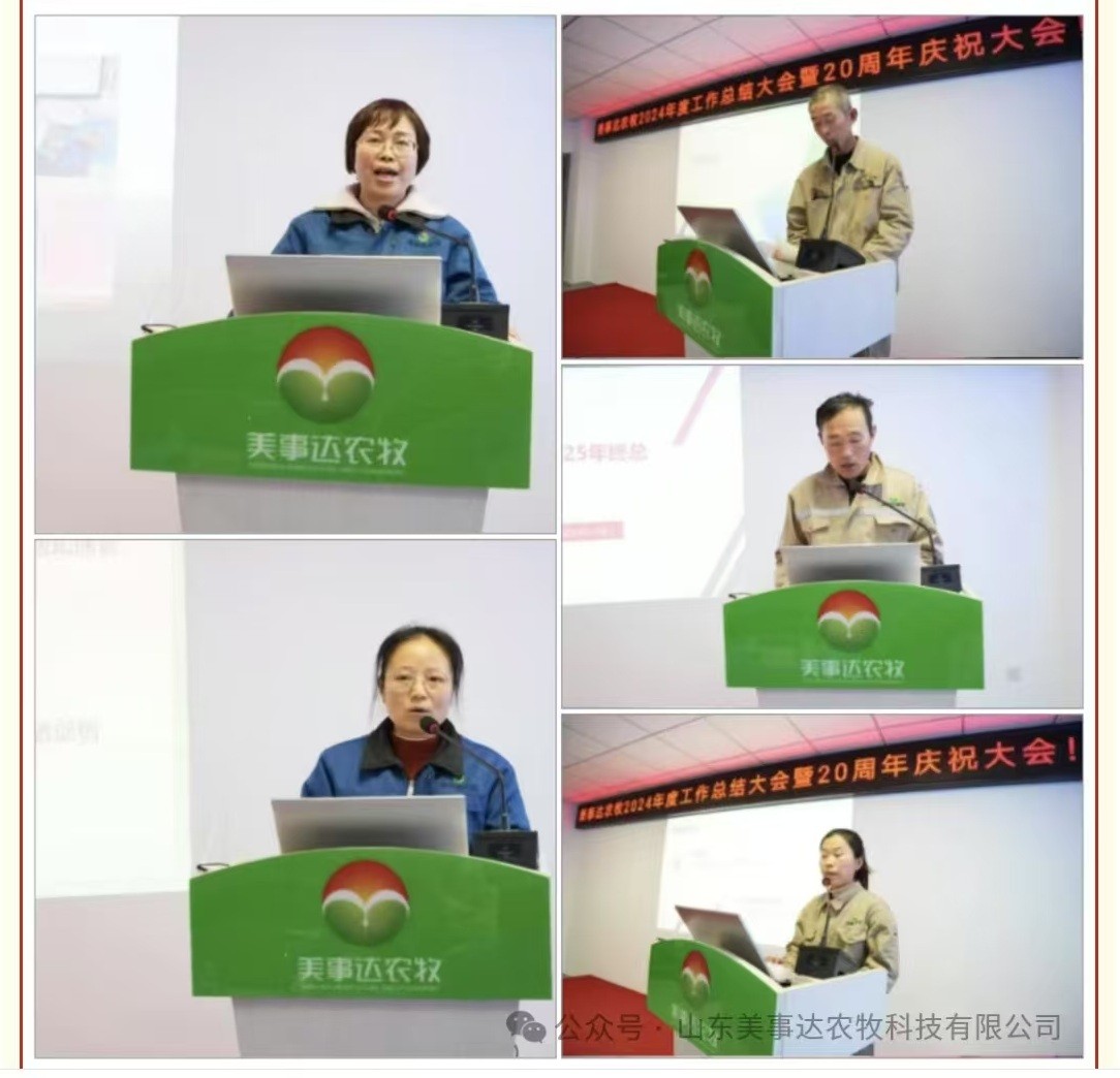 ? ? ? ? 風雨兼程二十載,砥礪奮斗再出發。2025年1月18日下午,美事達農牧2024年工作總結大會暨成立20周年慶祝大會在公司新辦公樓會議室如期舉行。山東省農業科學院畜牧獸醫研究所盛清凱研究員、趙紅波研究員、張相倫博士,山東農業工程學院農業科技學院副院長刁有江教授、公司總經理楊趙軍、部分核心客戶及全體員工齊聚一堂,共同回顧公司過去一年的工作和成果,并繪制新一年的發展藍圖。會議由副總經理李曉鵬主持。
