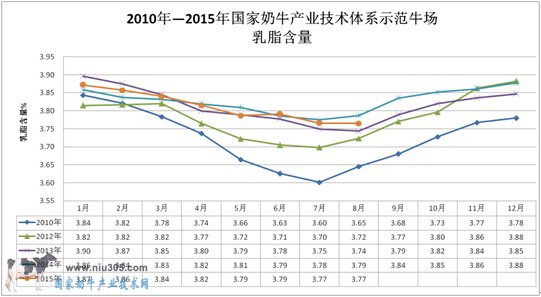 圖4? 國家奶牛產業技術體系示范牛場乳脂含量