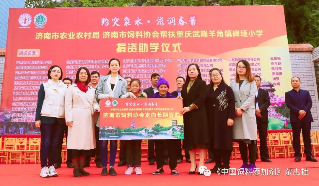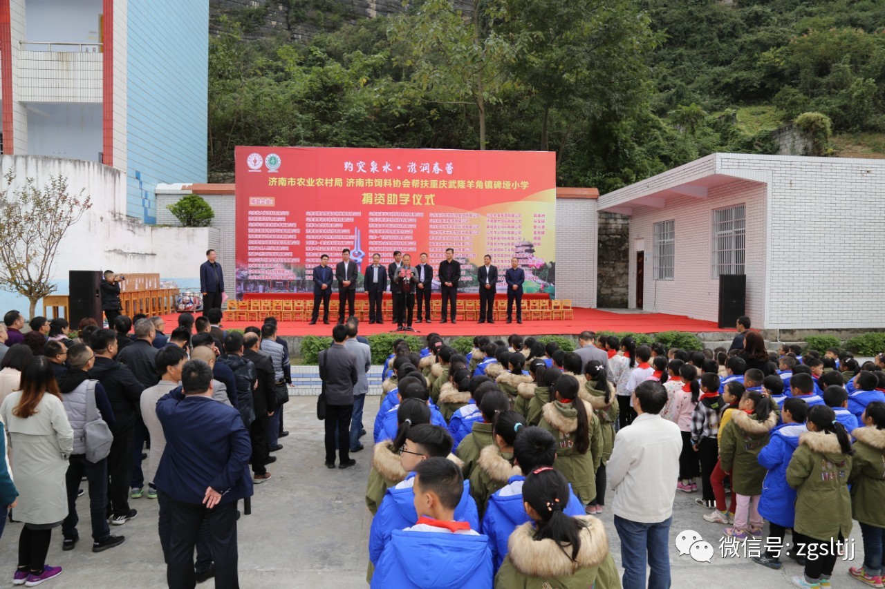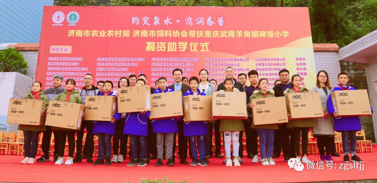 ? 濟南市農業農村局、濟南市飼料協會情系山區教育,繼去年四月組織企業為湖南省夯沙九年一貫制學校捐資助學后,于今年10月31日再次攜手愛心企業,走進我國西南山區重慶武隆羊角鎮碑埡小學,為學校送去大量書籍、電腦、足球、籃球等學習用品,并為每一位學生送上一件御寒校服。濟南市飼料協會還與兩位孤兒同學建立長期資助聯系,幫助他們完成小學、初中和高中階段的學業。本次活動共完成捐資助學和消費扶貧35萬余元。
