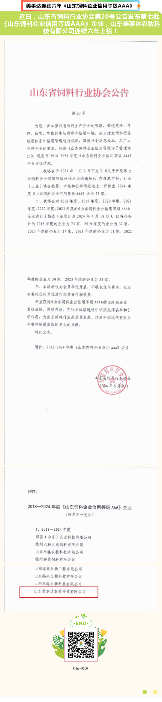 · 喜報!美事達產(chǎn)品5202榮獲“2023年度提質(zhì)增效飼料示范產(chǎn)品”